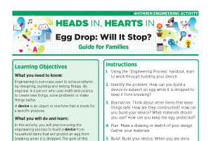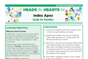 The Heads In, Hearts In family enrichment program encourages families to use their minds as a tool to expand their knowledge around a variety of topic areas. This packet contains all 16 engineering activities.