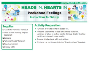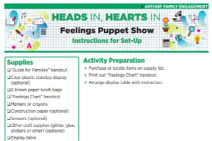 Heads In, Hearts In: A Delivery Approach to Family Enrichment Programming – Family Engagement Activities are designed to help Michigan State University Extension staff members to involve partners in facilitating a family enrichment program around the topic of early childhood education. Family enrichment programming is an approach to education that involves youth and their families learning together as they focus on a topic. This page includes the full family engagement activity book containing all 16 family engagement activities, the staff guide for tips for facilitating a family enrichment event and all 16 family engagement activities available for download individually.