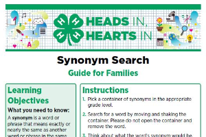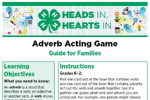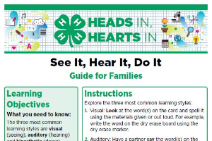 4-H's mission is to empower youth to reach their full potential, working and learning in partnership with caring adults. One goal to achieve that mission is to connect in-school learning with out-of-school-time opportunities that enhance learning. That's precisely the focus of Heads In, Hearts In: A Delivery Approach to Family Enrichment 4-H Programming. These resources encourage youth and families to use their minds (putting their "heads in") as a tool to expand their knowledge around variety of topic areas. By creating a shared educational experience, youth and their families will work, grow and learn together, putting their "hearts in" to the process.