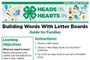 Heads In, Hearts In: A Delivery Approach to Family Enrichment Programming – Literacy Activities are designed to help Michigan State University Extension staff members to involve partners in facilitating a family enrichment program around the topic of science education. Family enrichment programming is an approach to education that involves youth and their families learning together as they focus on a topic. This page includes the full literacy activity book containing all 16 literacy activities, the staff guide for tips for facilitating a family enrichment event and all 16 literacy activities available for download individually.
