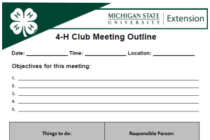 The 4-H Club Meeting Outline helps clubs stay organized by tracking topics, goals, and responsibilities. It keeps meetings focused, productive, and transparent while creating a clear record for future reference. -