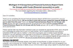 Michigan 4-H Digital Annual Financial Summary Report for Group with Funds