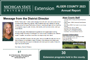 Michigan State University Extension is proud to serve people in Alger County with programs supporting youth, strong communities, healthy families, and our natural resources.