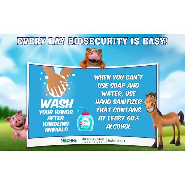 People who raise animals are not the only ones who need to be concerned about diseases that can easily spread between humans and animals. These types of diseases are called zoonotic diseases, and anyone who encounters animals could be at risk. The best way to prevent the spread of zoonotic diseases is by having and using a plan that reduces the risk of disease transmission.  This is known as biosecurity and it is an important step to making sure people and animals remain healthy.  On this website, you can find resources to create a biosecurity program, and materials for educating youth and adults about zoonotic diseases.