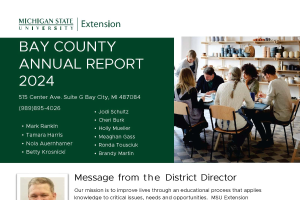 We hope you enjoy reading the annual report outlining how MSU Extension in Bay County and throughout the state continue to make Michigan thrive as an excellent place to live, raise a family, and conduct business.