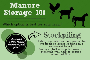 The capability to store manure reduces or eliminates the need to spread manure daily. Manure storage facilities allow small farms to store the manure until it can be removed and utilized later. -