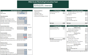 Designed for both first time and seasoned marketers, the MSU Grain Marketing Evaluation Tool uses current information to help analyze market conditions. -