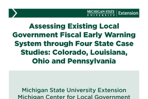The purpose of this report is to apply the Early Warning System (EWS) used by Pennsylvania with Michigan local government financial and socioeconomic data, as a way to assess potential fiscal distress that cities, townships, and counties may experience. -