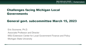 This resource is a collaboration between the Michigan Association of Counties and MSU Extension's Center for Local Government, Finance and Policy. -