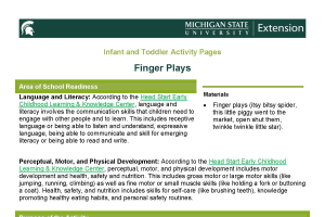 The Infant Toddler Activity Sheets will provide ways for parents to play and explore with their youngest children while building cognitive, social-emotional, and physical motor skills.