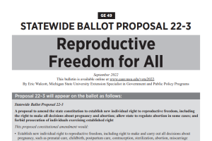 This bulletin offers Michigan voters a brief analysis of Statewide Ballot Proposal 22-3, a proposed constitutional amendment to protect reproductive rights, including the right to abortion care. -