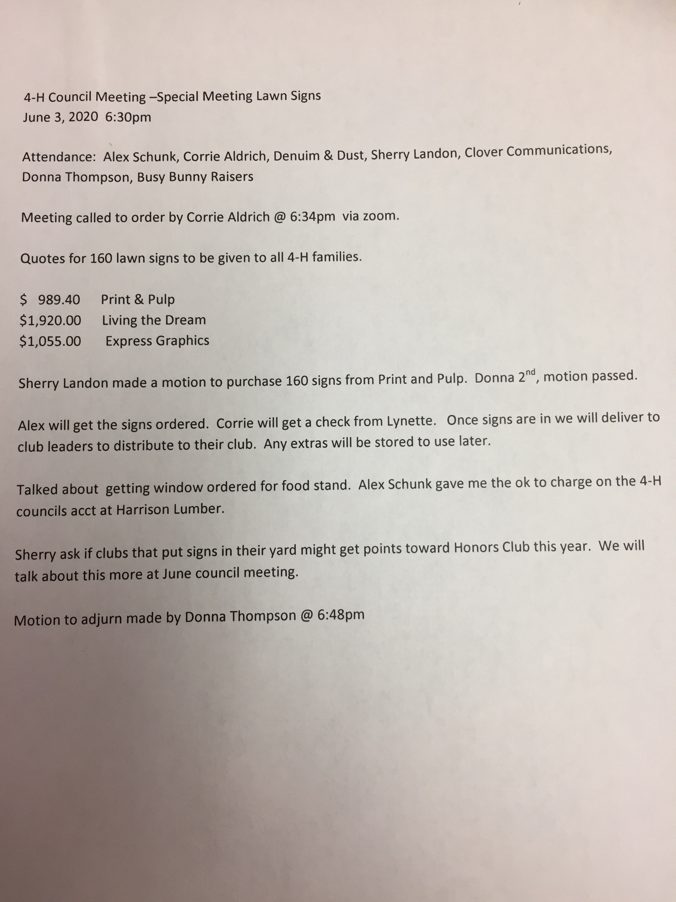 6/24/2020: Agenda May Minutes June Sign Minutes Treasurer's Report