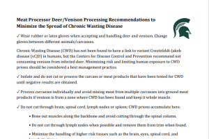 Meat Processor Deer/Venison Processing Recommendations to Minimize the Spread of Chronic Wasting Disease