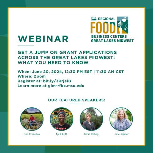 Join the Great Lakes Midwest Regional Food Business Center for a webinar on June 20 to help prepare your food or farm business for upcoming grant applications.