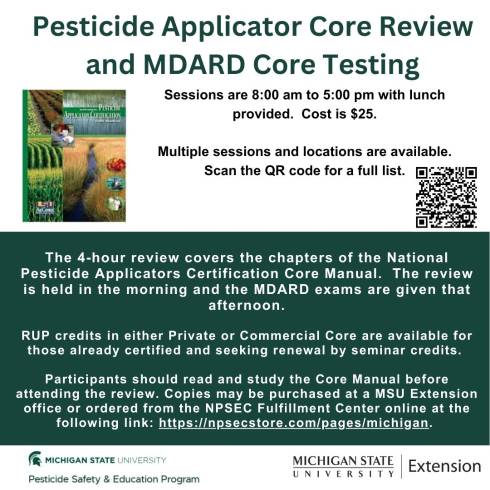 Pesticide Applicator Core Review and MDARD Core Testing – 5-20-25 Gaylord