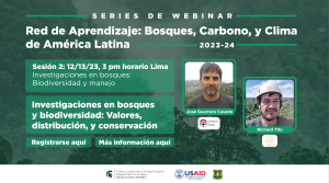 En este series de webinar, oradores José Guerrero Casado y Richard Tito presentan "Investigaciones en bosques: Biodiversidad y manejo." -