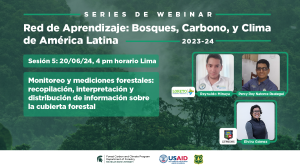 En este series de webinar, oradores Reynaldo, Percy, e Elvira presentan "Monitoreo y mediciones forestales: recopilación, interpretación y distribución de información sobre la cubierta forestal" -