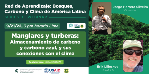 En este series de webinar, oradores Jorge Herrera Silveira y Erik Lilleskov presentan "Manglares y turberas: Almacenamiento de carbono y carbono azul, y sus conexiones con el clima." -