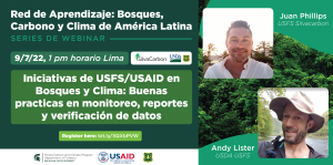 En este series de webinar, oradores Juan Phillips y Andy Lister presentan "Iniciativas de USFS/USAID en Bosques y Clima: Buenas practicas en monitoreo, reportes y verificación de datos."