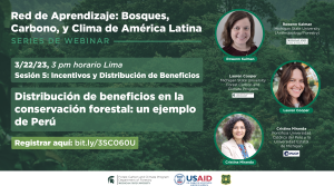 En este series de webinar, oradores Lauren Cooper, Cristina Miranda, y Rowenn Kalman presentan "Distribución de beneficios en la conservación forestal: un ejemplo de Perú". -