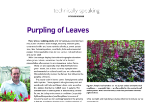 There are many specialty crops that naturally have red, purple or almost black foliage, while others turn those colors when conditions are unfavorable. This article briefly reviews the factors that influence the purpling of leaves.