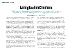The first article of a two-part series discusses how to grow a better caladium crop with air, substrate and irrigation water temperature management.