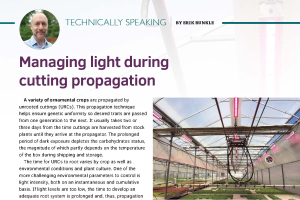 Light is one of the more challenging environmental parameters to control in a greenhouse. This article presents lighting guidelines during three stages of cutting propagation. -