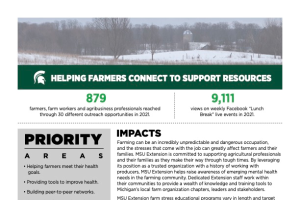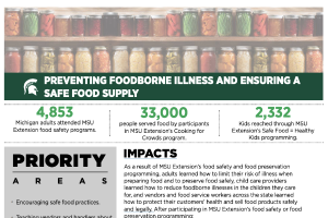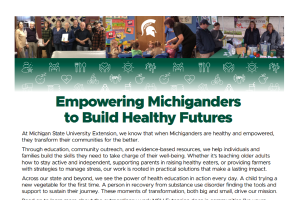 When it comes to food and health, MSU Extension makes a difference in communities all across Michigan — and beyond. From food safety to farm stress management, learn more about our work with our annual health and nutrition impact reports.