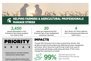 Combining farm business management expertise with mental and behavioral health expertise, MSU Extension's innovative farm stress management programming supports the mental health needs of those working in the agriculture industry.