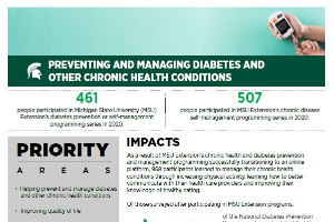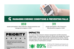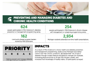 As a result of MSU Extension’s chronic health and diabetes prevention and management programming, adults across Michigan took better control over their chronic conditions. -