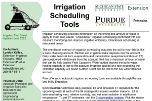 Irrigation scheduling provides information on the timing and amount of water to apply to meet crop needs. -