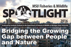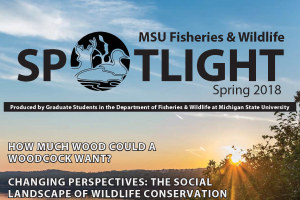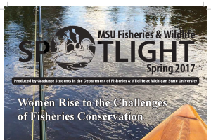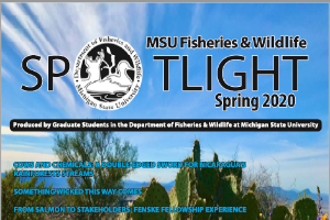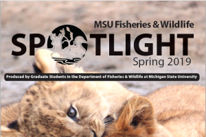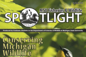 Spotlight is an annual magazine written and designed by graduate students in the Department of Fisheries and Wildlife. It showcases the diverse research and outreach efforts being conducted and is a great way to learn more about the department.