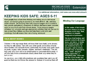 This resource introduces key concepts and age-appropriate activities for youth ages 6-11 that can be used to help protect children from child sexual abuse and help them build skills and knowledge that will reduce their risk of being victimized.