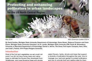 Protecting & enhancing pollinators in urban landscapes (US North Central Rgn) helps you attract pollinators and protect them from pesticides. Download full publication or click articles below to view sections of publication. Author: David Smitley, MSU