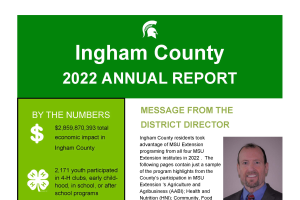 The 2022 Ingham County MSU Extension Annual Report contains program and participation information in regard to County residents.