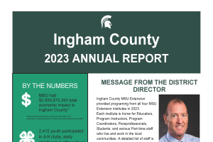The 2023 Ingham County MSU Extension Annual Report contains program and participation information in regard to County residents. -