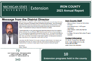 Michigan State University Extension continues to serve the residents of Iron County through the educational process that applies knowledge to critical issues, needs and opportunities.