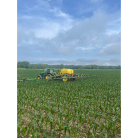 Side-dress fertilizer application in an ACSE BAU corn plot (B. Wilke, June 2021)