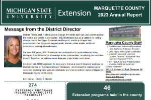 Michigan State University Extension is pleased to make information available to you. Our purpose is to provide educational programs and assistance in Agriculture and Natural Resources, Children, Youth and Family, and Community and Economic Development. If we can be of further assistance, please contact us. You can also view our most recent annual report for more information below: