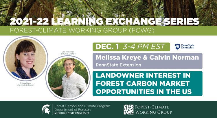 In this webinar, speakers Melissa Kreye and Calvin Norman from Penn State Extension present "Landowner Interest in Forest Carbon Market Opportunities in the US."