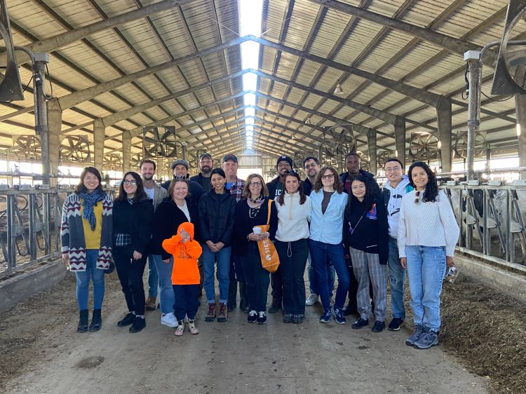 On a brisk, sunny, autumn Friday, Dr. Vincenzina Caputo and a group of 20 MSU Agricultural, Food, and Resource Economics (AFRE) graduate students piled into two vans in the Morrill Hall of Agriculture parking lot and embarked on a journey 75 miles south. The students arrived at Preston Farms, a 1,000 cow dairy located in Quincy, Michigan, at around 11:30 AM. The Preston family welcomed the group, served the students delicious homemade potato soup, and they shared sandwiches brought along by the MSU research team. Then, Brian Preston, one of the farm’s leaders, began a tour of the farm.