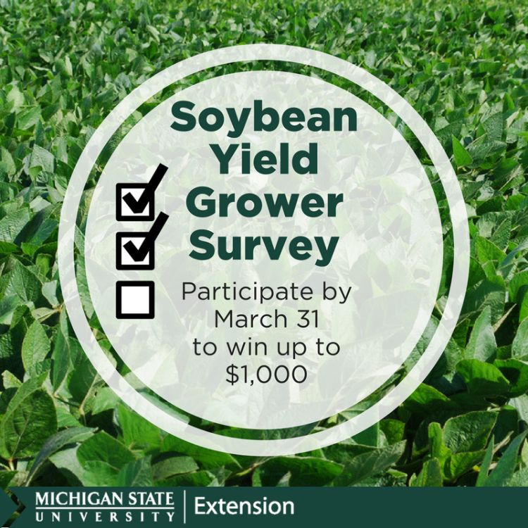 Michigan soybean producers have until March 31, 2018, to participate in an important survey that will help identify soybean yield gaps and specific management practices for overcoming them.