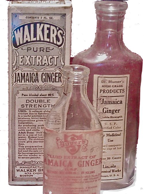 "Jake Leg Blues," "Jake Walk Papa," and other songs from 1929 and the early 1930s lamented the paralysis caused by drinking Jamaican ginger extract, commonly called "Jake." The ginger extract typically contained 70 to 80 percent alcohol, and during Prohibition some imbibed it for the alcohol. The extract avoided the alcohol prohibition by being sold as medicine. It was commonly found in pharmacies as a remedy for dyspepsia, nausea, and headache.