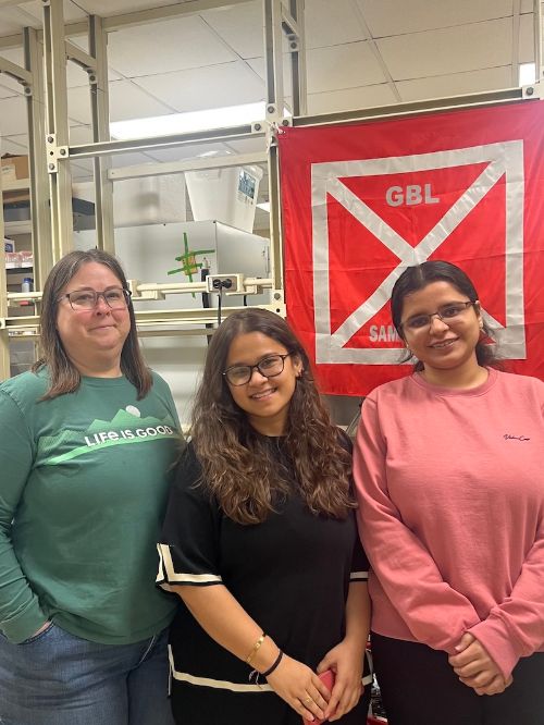 Meet Isha Popat and Krush Shah, two PhD students visiting PSM from Somaiya Vidyaviha University in India where Lisa Tiemann is adjunct, who came get a glimpse of agronomy research here at MSU. Their university is in a sugar cane growing region where the local farmers are interested in returning carbon to the soil to increase productivity. Above, they pose with Lisa and a flag depicting the sugar cane processing plant that they work with in the region.