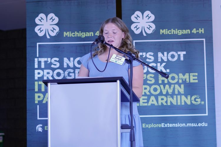 Alana Aulph is 18 years-old and has been a 4-H member in Monroe County for 11 years, where she participated in the poultry, rabbits, arts and crafts, and leadership areas. She was honored in 2022 and 2023 with Michigan 4-H State Awards for Leadership and Visual, Performing and Expressive Arts, respectively, among other accolades. She is now a freshman at MSU, studying nursing. In September, Alana shared a personal essay reflecting on the impact of the Michigan 4-H program on her life. The following is her testimonial, delivered to guests at the 2024 Michigan 4-H Legacy Awards Celebration.