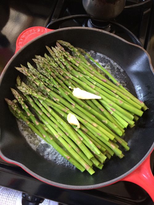 To store asparagus, put a moist paper towel at the base of the bunch, place in a plastic bag and refrigerate. Do not wash it until you are ready to prepare. Keep this and all fresh produce away from meat, poultry and seafood products, and make sure to wash hands before and after handling. Rinse in cool running water, checking tips for sand by dunking in and out of water and rinsing well. Do not use soap! Trim off any tough ends remembering the entire stalk is edible. Be careful to not overcook asparagus, it should be “fork tender.”