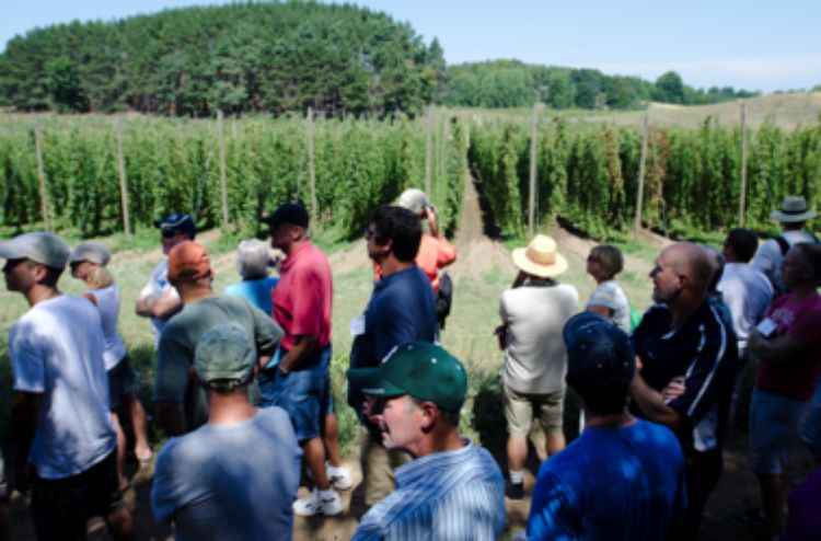 Michigan State University Extension and partners will be hosting the 9th annual hop field day and tour on Friday, July 29 from 8 a.m. – 5 p.m. The tour is designed for both beginning and advanced hop growers as well as those interested in learning more about hop production and craft beer. Participants will park at Incredible Mo’s in Grawn, Mi and travel by tour bus to young and established hop yards in Manistee and Leelanau Counties and Stormcloud Brewing Company in beautiful Frankfort, MI. Local growers will be on hand to talk about all aspects of hop production: initial costs, plant care, disease & insect management, trellis construction, quality control, propagation, organic & conventional growing practices, and picking and processing. The tour will visit Midwest Organic Hops (Leonard Olson Farm), as well as Big Daddy Hops. The group will end the day with an educational tasting conducted by the Michigan Brewers Guild at Empire Hops Farm and return by tour bus to Incredible Mo’s.