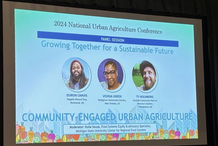 Kolia Souza, Food Systems Equity and Advocacy Specialist at MSU CRFS, facilitated a panel of community leaders who support urban gardens in Richmond, VA, New Orleans, LA, and Philadelphia, PA. Through their discussion, it was evident that collaborating with community members to design the productive green space contributes to increased food security, environmental health, and community well-being. “One of the panelists, Duron Chavis of Happily Natural Day, emphasized that when folks ask how to engage the community, his response is that he is the community,” Souza said of the conversation. “We are the community. That's a reminder that we all have - or should have - a vested interest in agriculture at every scale.”