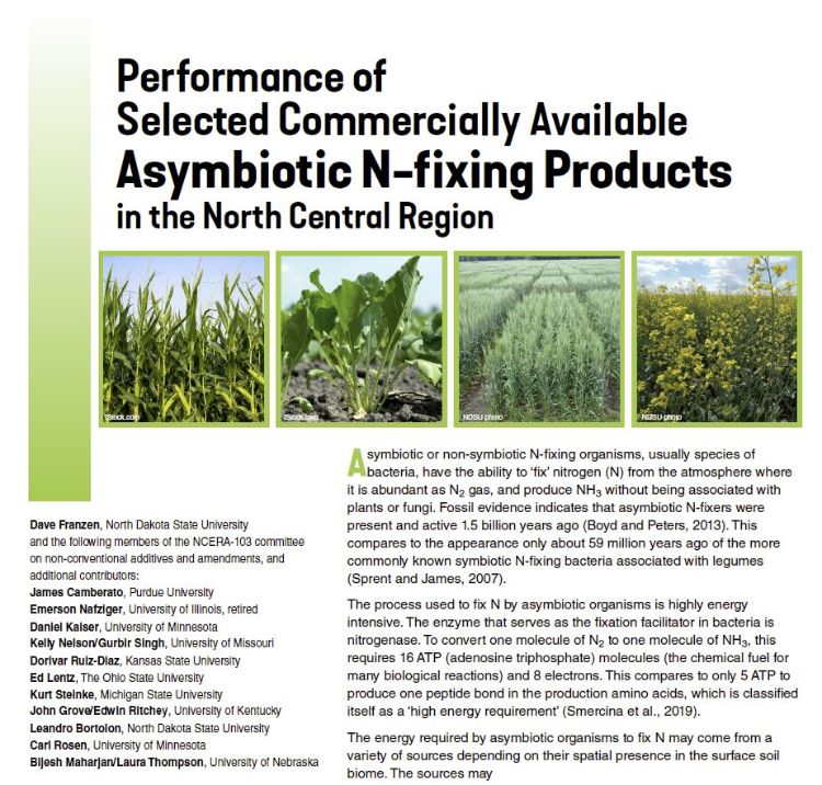 Performance of Selected Commercially Available Asymbiotic N fixing Products in the North Central Region.