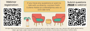 For more information on child development, parenting and school readiness please visit the Family Section on the Michigan State University Extension website.